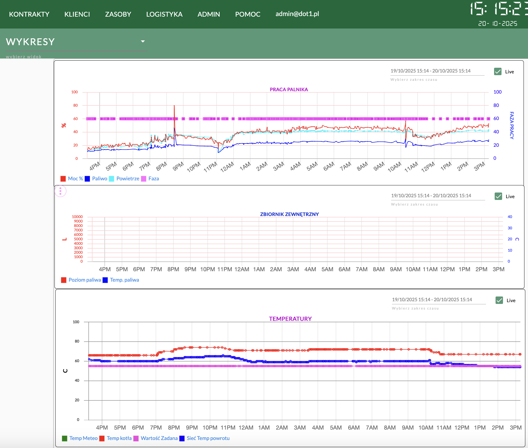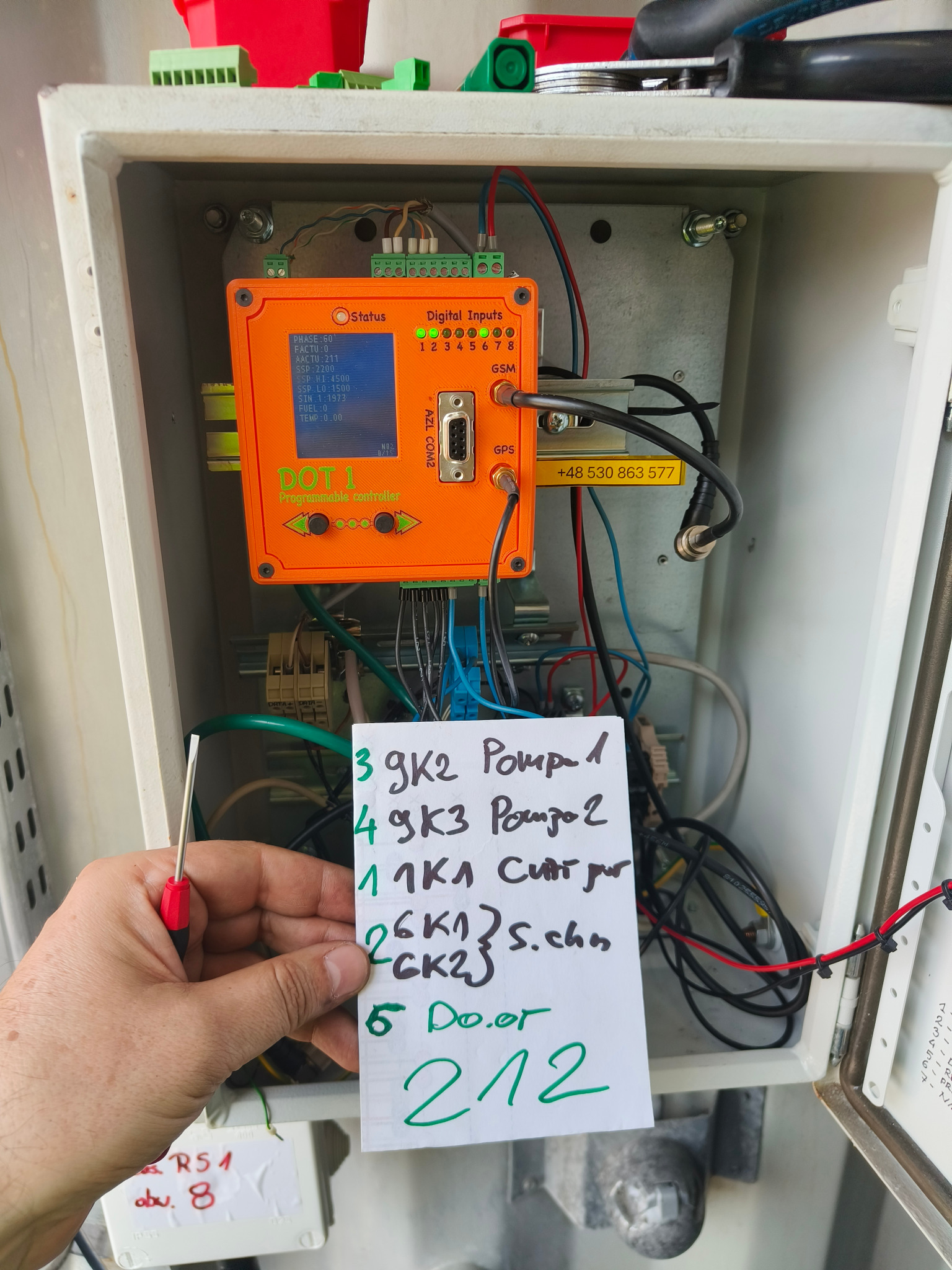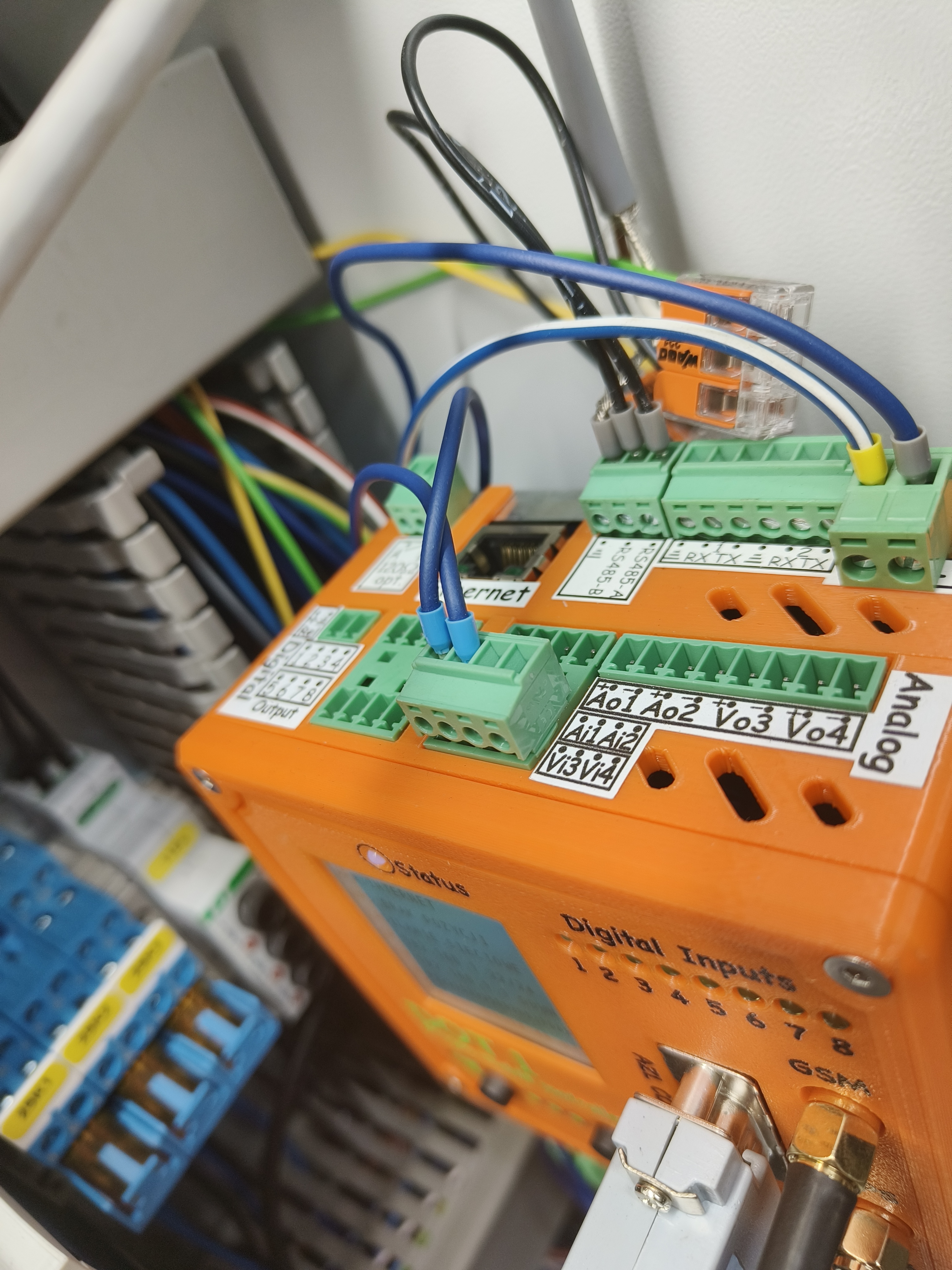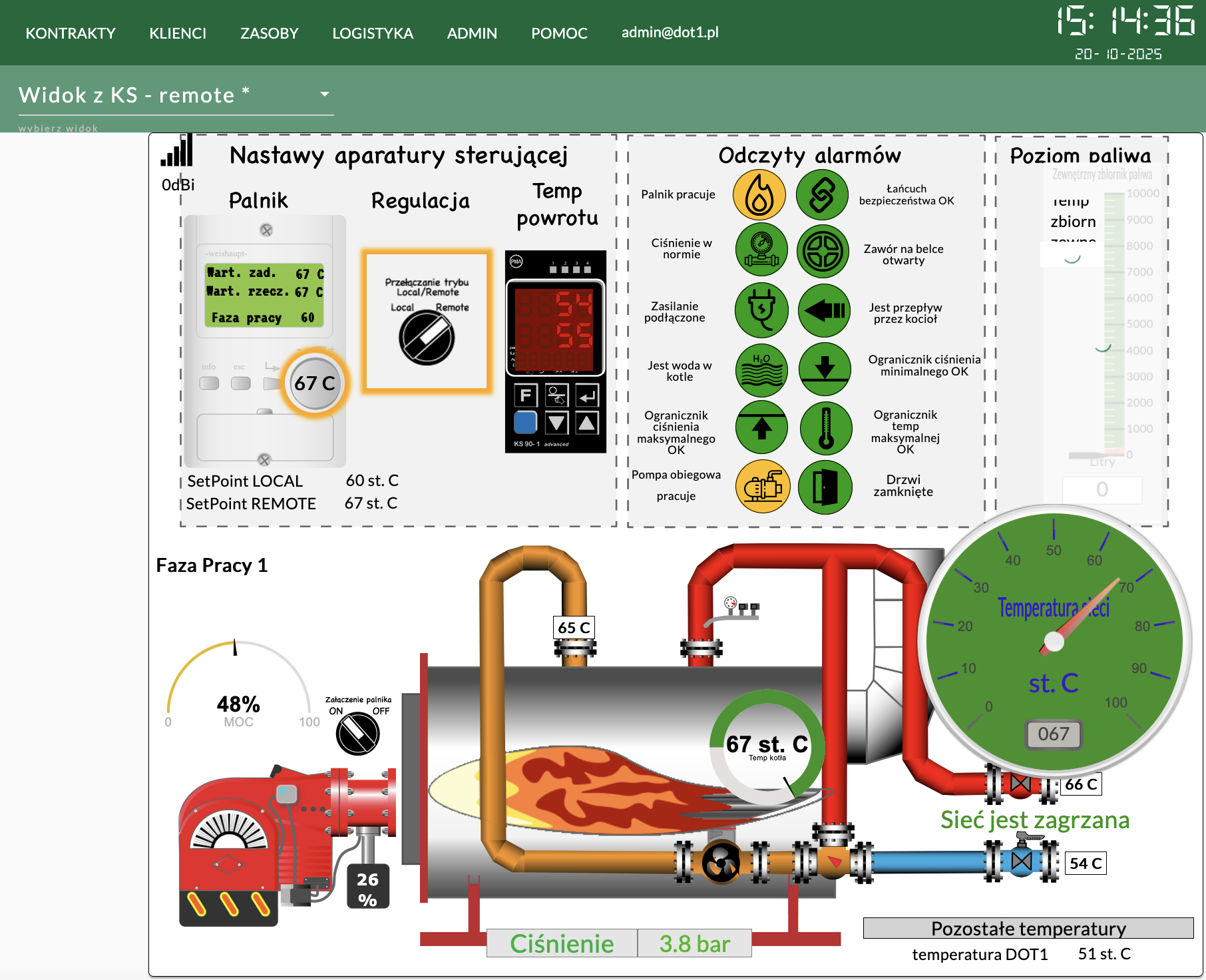 Instalacja z kotłowni wodnej 2,7 MWW trakcie instalacji w kotłowni 360 kWKotłownia parowa około 2 T/hParowa kotłownia kontenerowa – Weishaupt W-FM100 podłączony do RS232_1instalacja w osobnej skrzyncePrawie kompletne obsadzenie wyjść cyfrowych i temperaturpodłączony przetwornik ciśnienia 4-20mAPpodłączony W-FM100 poprzez złącze D-SUBDOT1 Slim dodany do kotłowni starszego typuMenadżer palnika W-FM100 podłączony zwykłą skrętką do RS232_1DOT1 podłączony do W-FM100 za pomocą D-SUBSzybka instalacja w kotłowni parowejDuże obsadzenie wejść cyfrowychPodłączone 4 RTDPrzetwornik ilości paliwa na ścianie Magazynu PaliwaWizualizacja widoku na żywo kotłowni wysokoparametrowej 2.7MW, przy pracy na gazie ziemnymHistogramy pracy kotłowni 2,7MW, praca na gazie, magazyn paliwa jest niepodłączonyWgląd w kody błędów palnika Weishaupt W-FM100/200